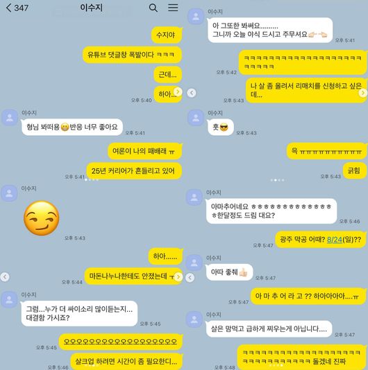 イ・スジはPSYの挑発に「ふふ」という短い反応で受け流し、余裕のある姿を見せた。続けて「誰がより多くPSYと呼ばれるか勝負しよう」と挑戦を仕掛けた。PSYが「増量するには少し時間が必要だ」と言うと、イ・スジは「アマチュアだ。一ヶ月くらいあげればいいのか。体重は心を決めて急いで増やすものではない」と鋭い言葉を返した。結局、二人は8月24日の光州公演で「リマッチ」を予告した。