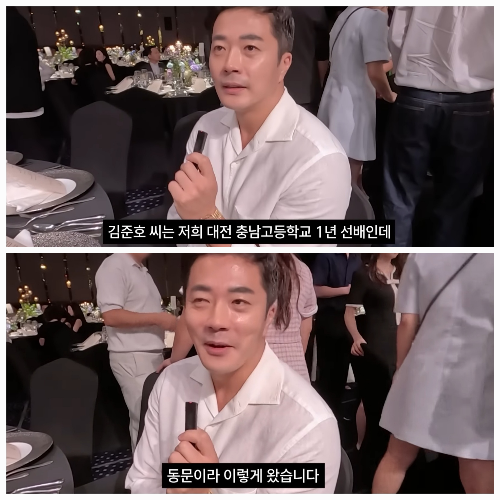 权相佑は「金俊浩さんは私たち忠南高の先輩で、昨日招待を受けてすぐに出席した。同門なので行かないわけにはいかなかった」と結婚式に出席した理由を説明した。最後に「これからも長く幸せでいてほしい」と心からのメッセージを伝えた。