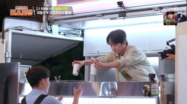 イ・チャンウォンは後輩たちのために鶏の甘辛揚げ200人分を用意した。彼は「高校3年の時を振り返ると本当に勉強したくなかった。特にセンター試験100日前は集中もできなかった。少しの休憩時間を与えたかった」と話した。続けて「学校に通っていた時が心が安らぎ純粋で幸せだったが、本当にその時は分からない。今日後輩たちが美味しく食べて優しい言葉をかけてくれて、むしろ私が幸せを得たようだ」と付け加えた。