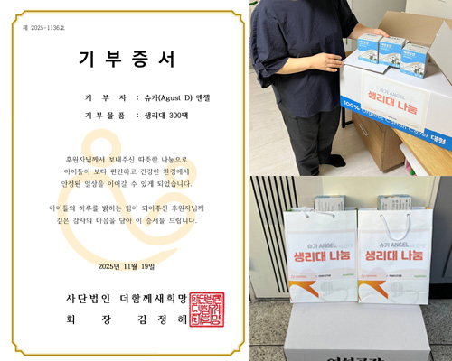 SUGAのファンが低所得のひとり親家庭の子どもたちに衛生用品を寄付した。BTS(防弾少年団)のメンバーSUGAのファンで構成されている寄付活動の集いSUGA Angelが、ひとり親家庭の女の子たちのために衛生用品300パックを寄付した。