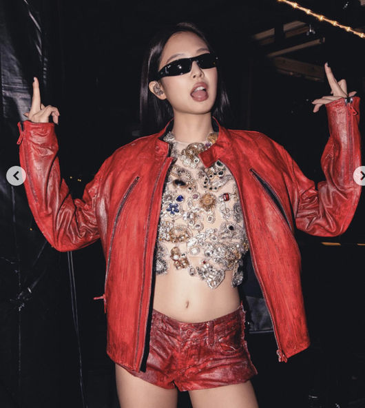 BLACKPINKのジェニーが東京公演で独創的なステージファッションで注目を集めた。ジェニーは最近、日本の東京で開催された公演で、レッドカラーのレザージャケットとショーツ、ジュエリーディテールのクロップトップを組み合わせたスタイルでステージに立った。このスタイルはスリムなサングラスとレッドブーツで仕上げられ、強烈でヒップな雰囲気を醸し出した。
